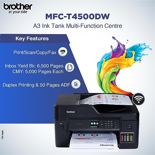 Brother MFC-T4500DW All-in-One Colour Inktank Refill System Printer with Wi-Fi and Auto Duplex Printing,Black