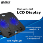 Geonix Gaming Laptop Cooling Pad GXLCP036 – LED Lights, 2 Quiet Fans, Adjustable Stand for 15.6–18” Laptops (Black)