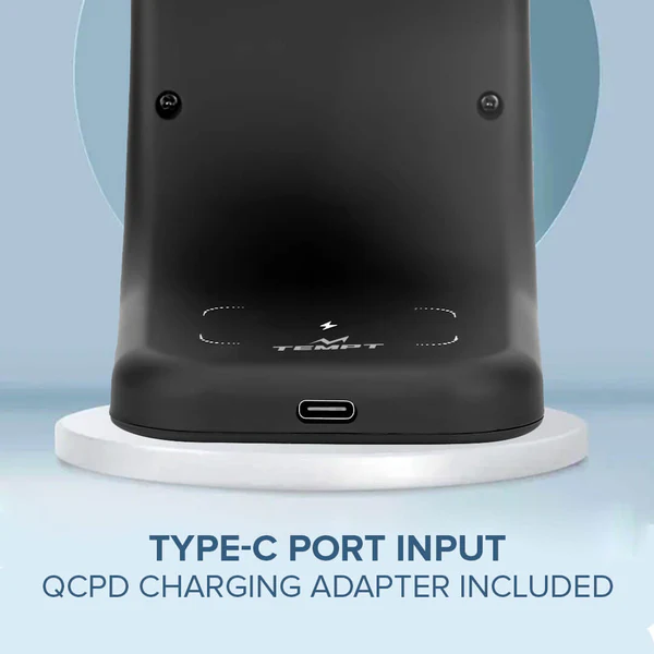 Charge smarter and faster with the Tempt Arc Wireless Charger, a 3-in-1 MagSafe Fast Charging Station crafted for the modern Apple ecosystem. With a premium matte finish, efficient 15W output, and multi-device compatibility, this all-in-one wireless dock is designed to power your Apple devices with elegance and reliability.
