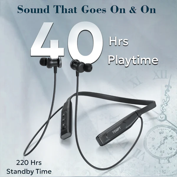 Tempt Bounce X Neckband – Wireless Bluetooth Earphones with 40 Hours Playback, Type-C Fast Charging & IPX5 Rating