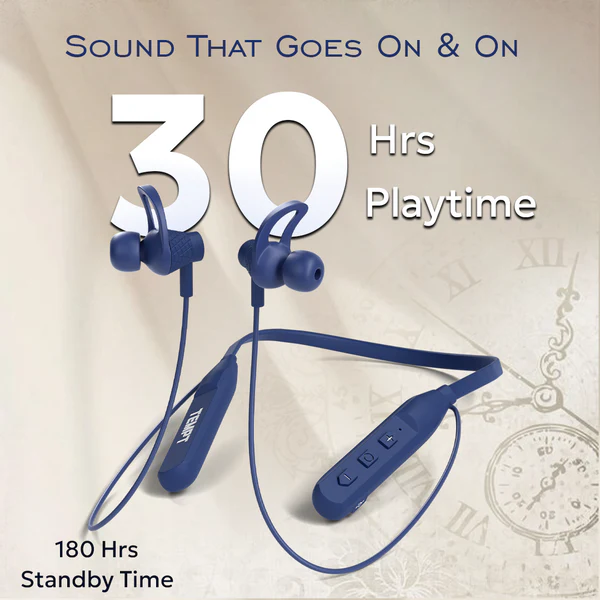 Tempt Rush X Neckband – Wireless Bluetooth Earphones with 10mm Drivers, 30 Hours Playback & Type-C Fast Charging