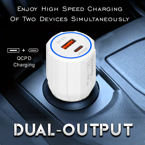 Dual-Port Design: Equipped with USB-A and Type-C ports to charge two devices simultaneously without compromising speed.