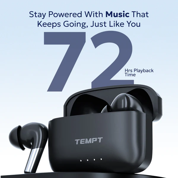 Tempt Wave Pro Earbuds – 72H Playback, 13mm Bass Drivers, Bluetooth v5.3, IPX6 Water Resistant, Type-C Fast Charging