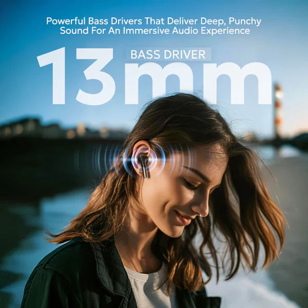 13mm Bass Drivers – Powerful, deep bass and clear treble for an immersive sound experience.